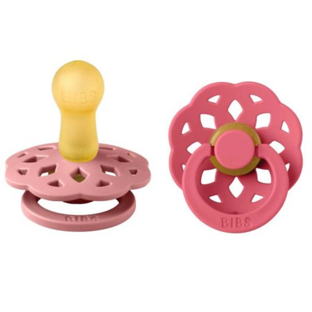 BIBS Boheme 2 Pack - Dusty Pink/Coral Teats er to smukke sutter fra Boheme-kollektionen. Rigtige sutter til rigtige prinsesser. Dette er en virkelig tidløs sut til enhver pige. Disse to smukke sutter har en rund, kirsebærformet sut lavet af 100 % naturgummi (også kaldet latex), og det smukke skjold på Dusty Pink & Coral-sutterne er lavet af 100 % polypropylen.