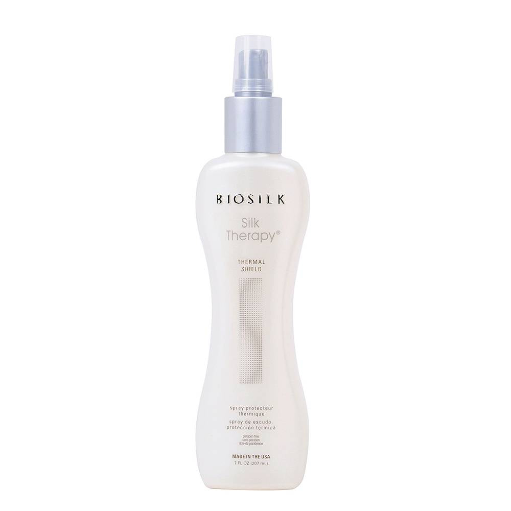 Biosilk Silk Therapy Thermal Shield giver optimal beskyttelse mod varmen fra stylingredskaber. Denne avancerede formel indeholder silke og andre ingredienser, der beskytter håret mod varmen fra glattejern og krøllejern. Samtidig sikrer den langtidsholdbare stylingresultater med ultimativ glans. Sprayen er nem at påføre og giver håret en smuk glans. Denne Biosilk Spray er fri for SLS og silikoner.