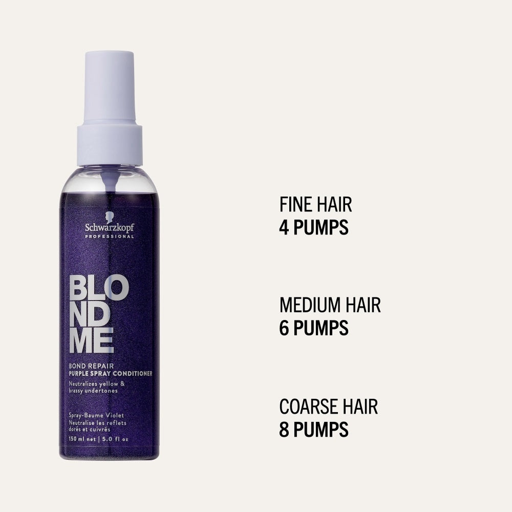 BlondMe Bond Repair Purple Spray Conditioner er super nem at bruge og perfekt til daglig brug. Følg disse trin:
