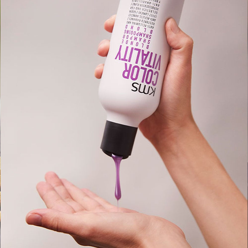 Påfør en lille mængde KMS Blonde Shampoo i vådt hår og massér det blidt ind. Lad shampooen virke i 30 til 60 sekunder, eller op til 5 minutter for et mere intenst resultat, og skyl derefter grundigt. For de bedste resultater, følg op med KMS Blonde Conditioner efter vask.