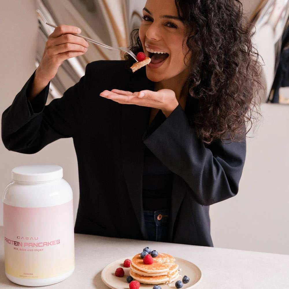2. Morgenmads- eller frokosttip: Bland 40 gram Cabau Lifestyle Protein Pancakes Banana med 70 ml vand eller mælk for at lave en dej. Steg dem på en pande, og server dem med frugt eller nødder.