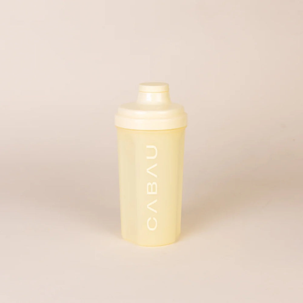1. Før din træning eller som mellemmåltid: Bland 1 skefuld Cabau Lifestyle Whey Protein Banana med 250-300 ml vand eller (vegetabilsk) mælk i den smørgule shakekop. Bare ryst, og så er du klar!