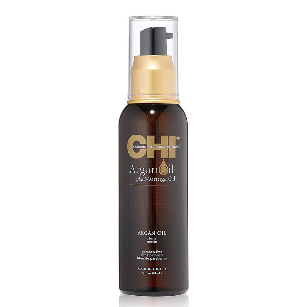 CHI Argan Oil er en intens pleje til håret, som i høj grad forbedrer dets tilstand. CHI Argan Oil indeholder moringaolie og vitaminer, der nærer og fugter håret optimalt. Arganolien er velegnet til kruset, kruset og skadet hår. Håret vil føles vidunderligt blødt efter brug og have en smuk, naturlig glans. Spaltede spidser behandles og forebygges. CHI's arganolie kan bruges i både fugtigt og tørt hår og er fri for parabener. Denne arganolie beskytter håret mod varme og UV-stråler. Olierne er specielt designet til at bekæmpe hårets ældning.