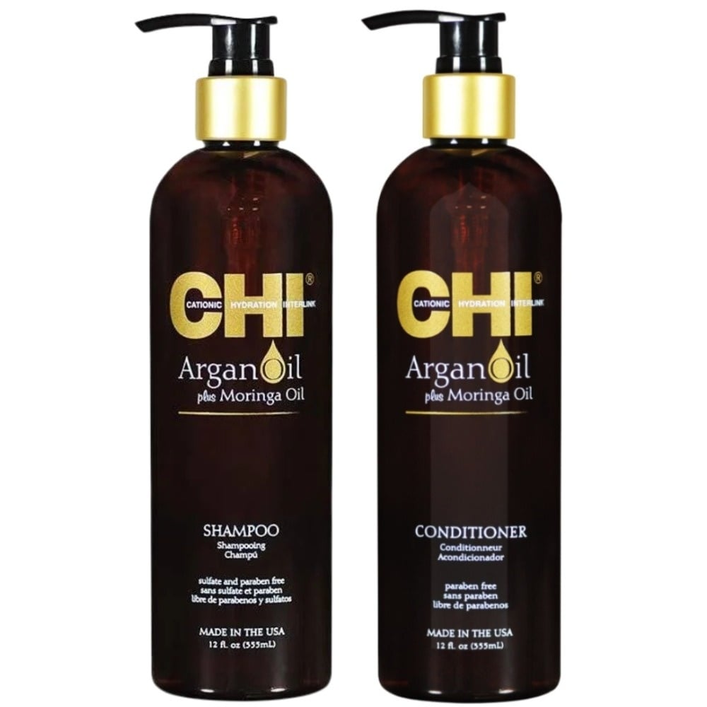 Dette gode sæt med CHI'sArgan Oil Shampoo og Conditioner er fyldt med fine detaljer, der får dit hår til at skinne. Her er højdepunkterne: