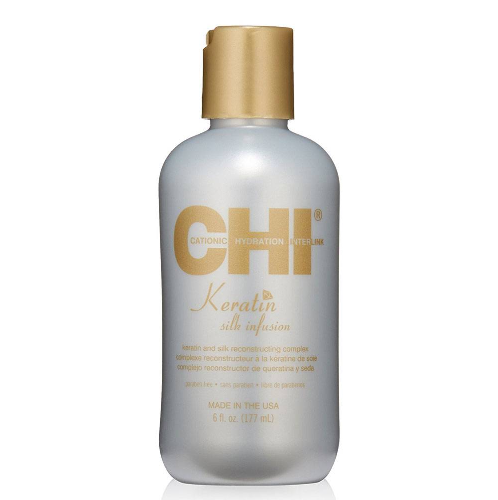 CHI Keratin Silk Infusion gør dit hår glattere, stærkere og mere skinnende. Fluffy og tørre lokker bliver til silkeblødt, strålende hår, der føles glat og er nemt at style. Produktet hjælper også med at beskytte dit hår mod varme og hverdagens påvirkninger, så det ser sundere ud og føles bedre!