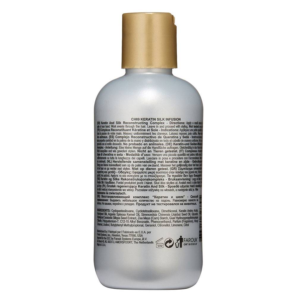 CHI Keratin Silk Infusion indeholder en kraftfuld blanding af plejende ingredienser, der nærer og styrker dit hår. Vigtige ingredienser: