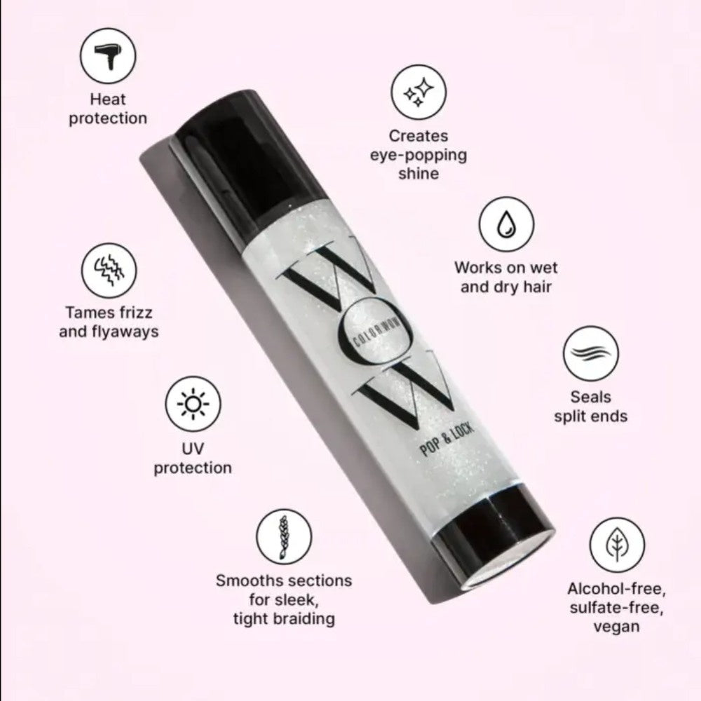 Color Wow Pop & Lock High Gloss Finish gør dit hår superblankt, glat og krusfrit. Dine lokker får en sund, luksuriøs glans.