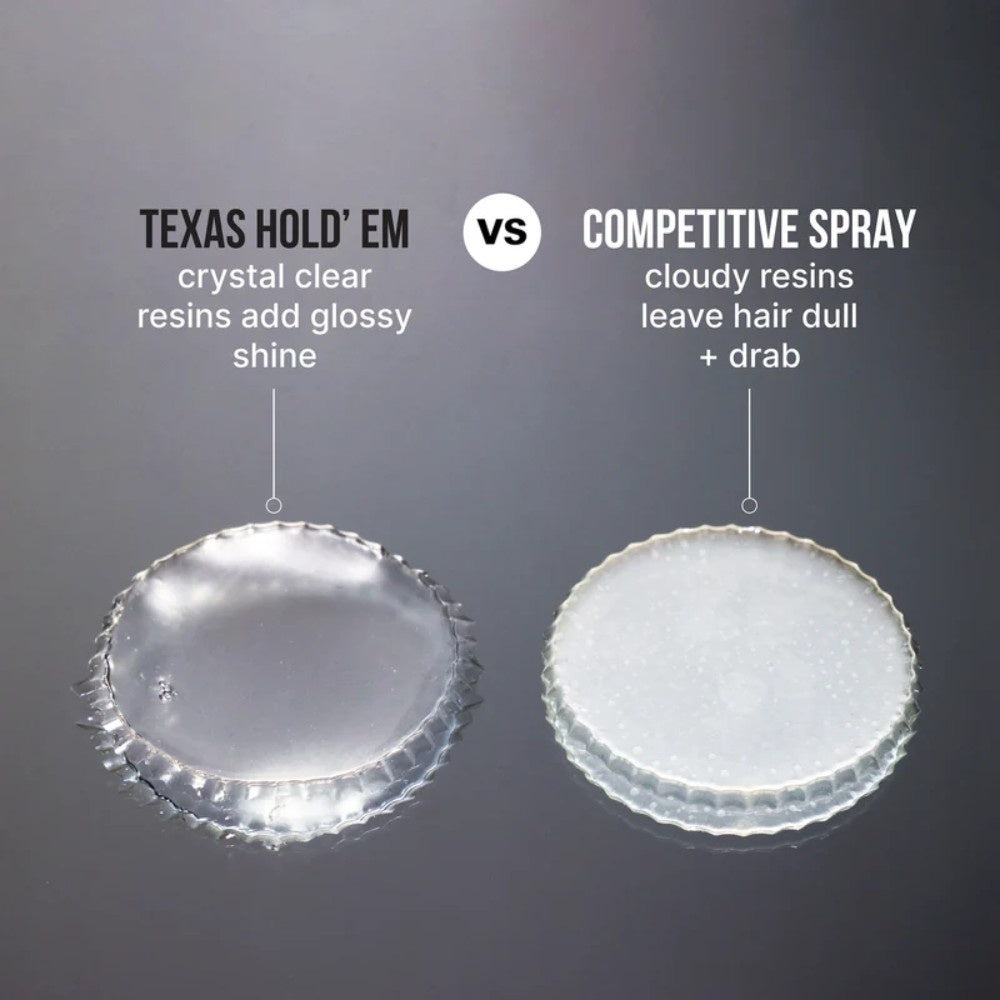 Texas Hold 'Em Big Hold Hairspray er dit hemmelige våben til frisurer, der ikke kan stoppes. Denne stærke hårspray giver dit hår øjeblikkelig volumen, en fast hold og langvarig hold uden at dine lokker føles sprøde eller tunge. Tænk: stort Texas-hår, uden at du behøver at rejse til den anden side af havet.