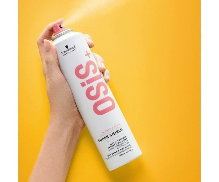 Trin 3: Brug Super Shield Heat Protection Spray før styling med redskaber for at beskytte dit hår mod varmeskader.