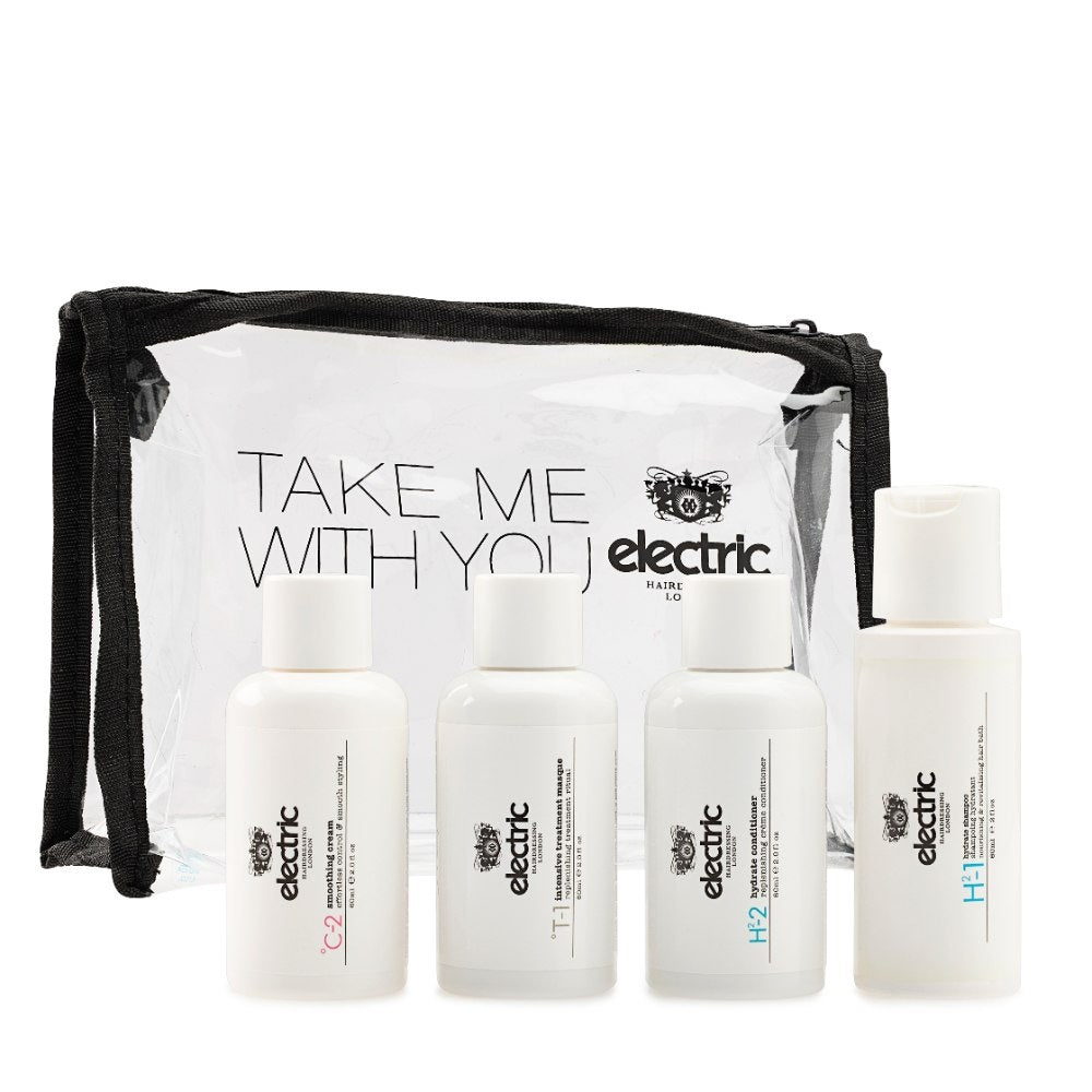 Electric Take Me With You Kit is dé must-have voor elke beautylover die vaak onderweg is. Of je nu een weekendje weggaat, naar de sportschool fietst of op zoek bent naar een stijlvol cadeau: deze reisvriendelijke set biedt alles wat je haar nodig heeft in miniformaat. De kit bevat vier geliefde TSA-goedgekeurde Electric producten, perfect verpakt in een transparante  toilettas met rits. Compact, praktisch én luxe, klaar om overal mee naartoe te gaan.