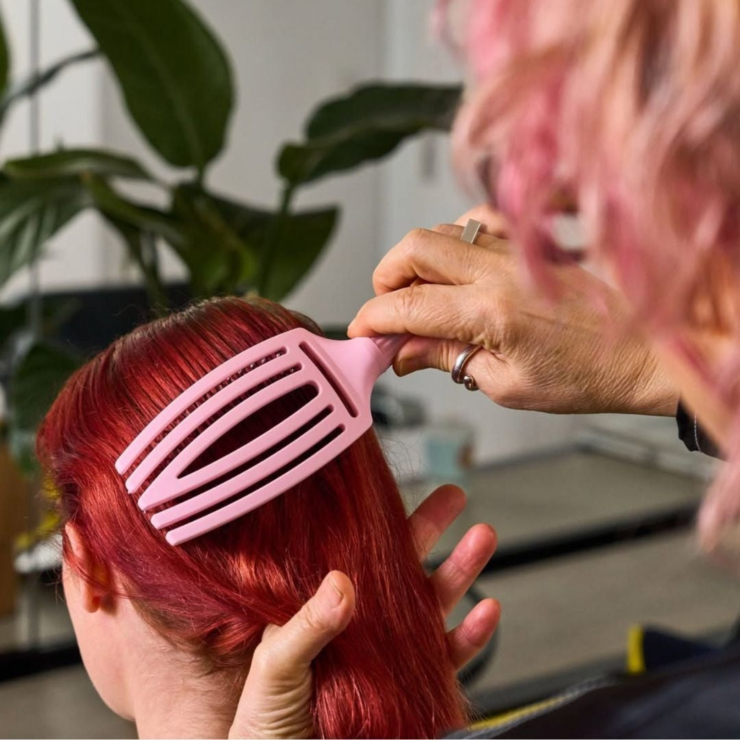 Olivia Garden FingerBrush Pink Pastel Combo Brush Medium har et unikt design i form af en hånd. Børstens specielle buede form passer perfekt til hovedbunden for mere komfort og perfekt kontrol. Den perfekte børste til sammenfiltret hår. Takket være kombinationen af 100 % vildsvinehår, som afgiver keratin, giver denne børste smuk glans og volumen. Desuden lukker den hårets neglebånd, hvilket bidrager til længerevarende farve og forhindrer tørhed. Takket være den optimerede luftstrøm tørres håret hurtigt og effektivt uden at tørre ud eller blive overophedet. Takket være det lette materiale og det ergonomiske håndtag ligger børsten perfekt i hånden uden at belaste håndled, arme og skuldre unødigt.