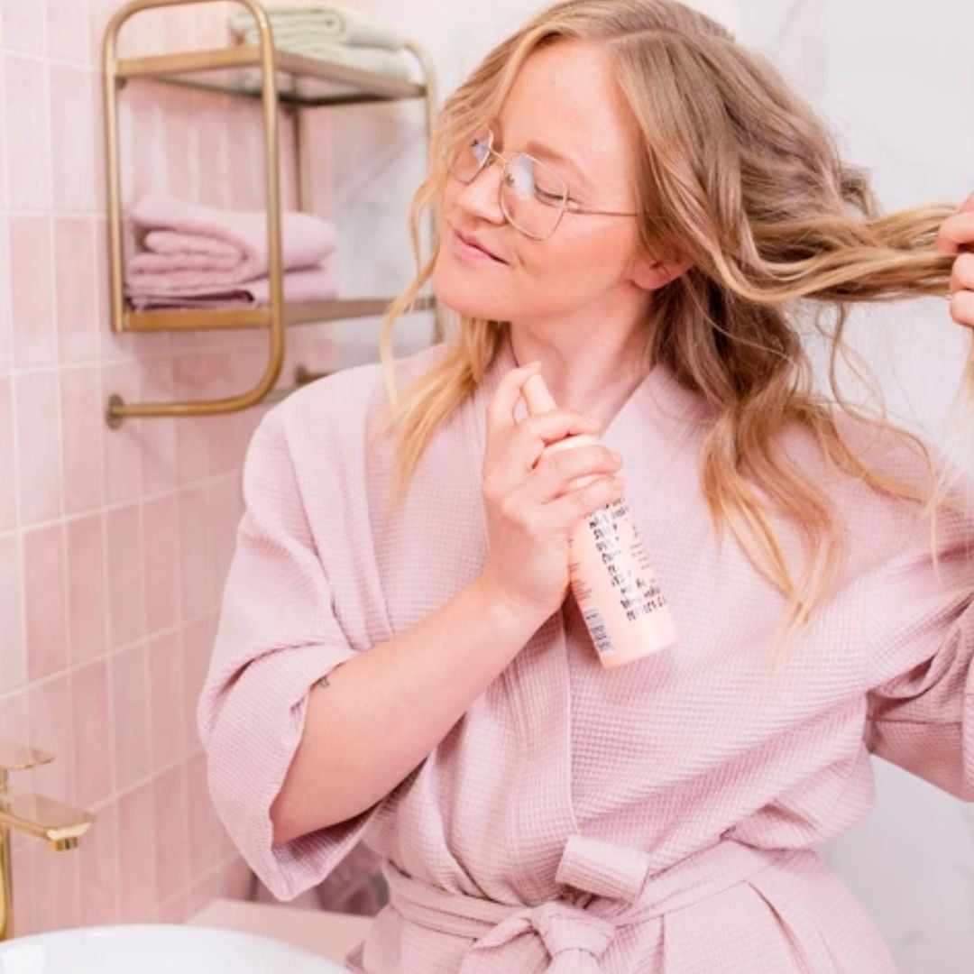 Trin 1: Spray produktet jævnt over håndklædetørt hår, før du bruger stylingredskaber. Sørg for at fordele sprayen godt ved at rede håret.