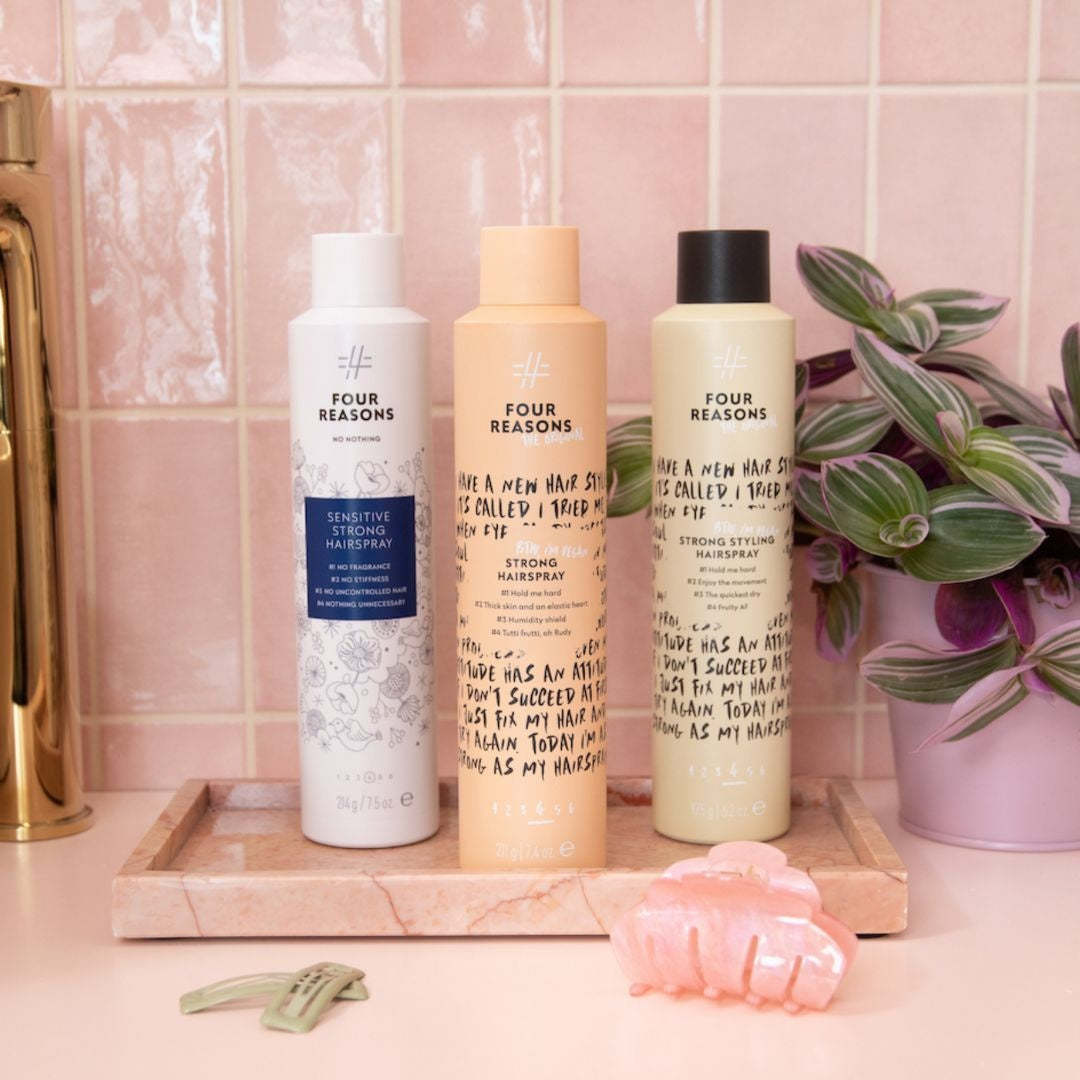 Four Reasons Original Styling Strong Hairspray er nem at bruge og perfekt til enhver lejlighed.