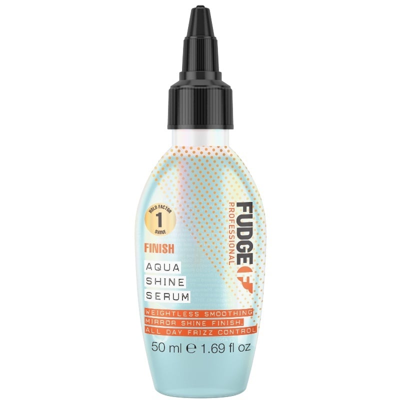 Fudge Finish Aqua Shine Serum får dit hår til at skinne som aldrig før. Den vægtløse formel efterlader håret dejligt luftigt og blødt, samtidig med at det får en smuk, langvarig glans. Serummet tæmmer krus og gør selv de mest uregerlige lokker glatte og smidige.