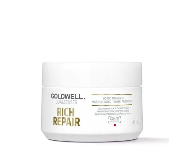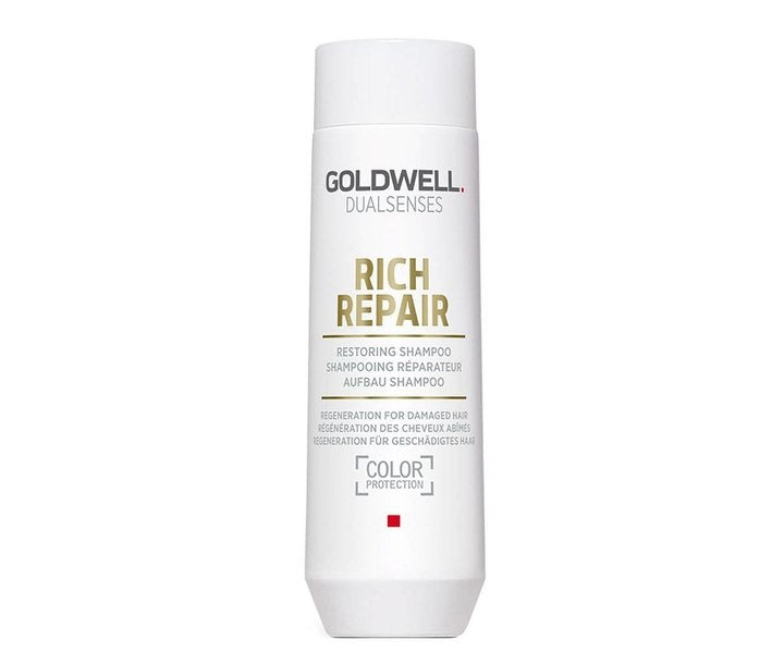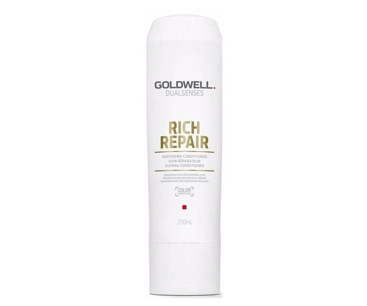 Goldwell Dualsenses Rich Repair Shampoo er en skånsom shampoo, der trænger dybt ind i hårfibrene, så håret får optimal reparation. Shampooen er et ægte must-have til tørt og skadet hår. Beriget med MicroProtec Complex og IntraLipid sikrer 60'er-behandlingen glat og smidigt hår efter hver vask. Goldwell Rich Repair Conditioner reducerer effektivt hårbrud, genopretter den naturlige elasticitet og forbedrer redbarheden.