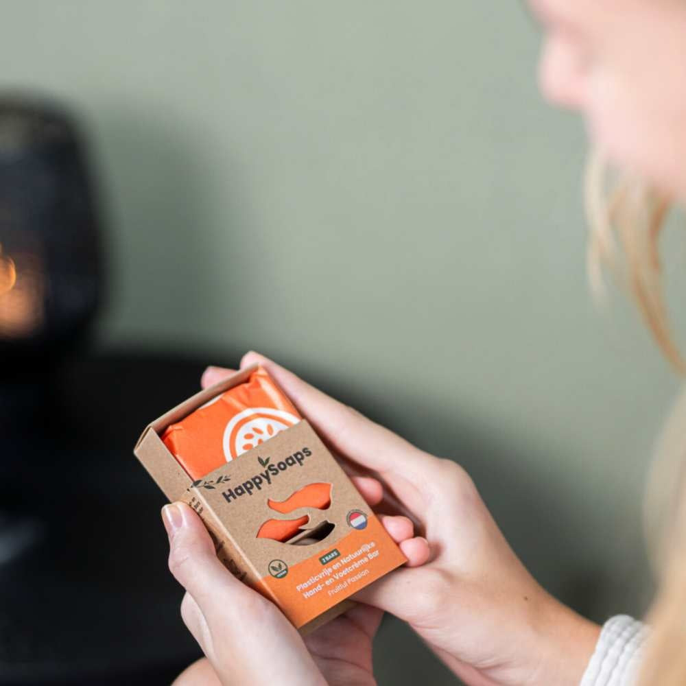Trin 3: Opbevar baren sikkert i den praktiske emballage eller i HappySoaps Storage Tin. Så kan du nyde din bar i længere tid. Nyd dine glade hænder og fødder!