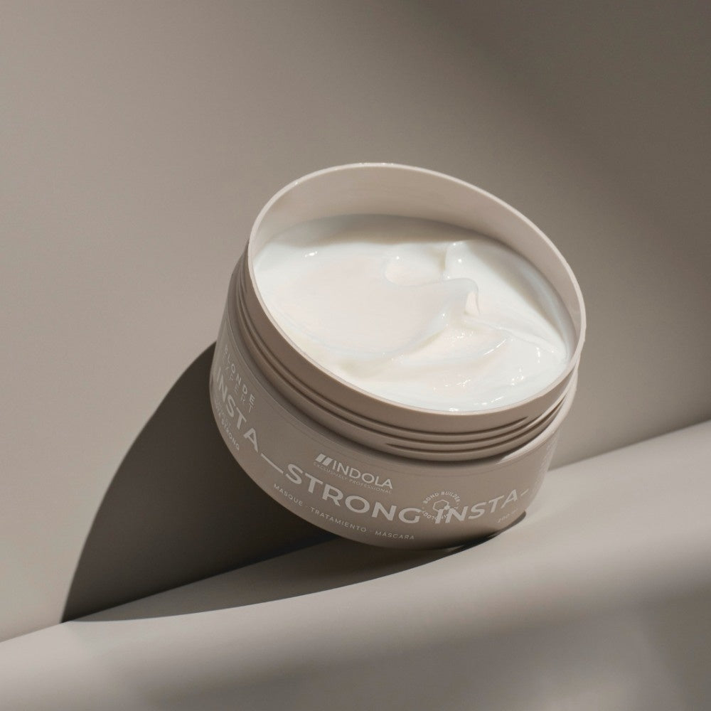 Indola Blonde Expert Insta Strong Treatment er livredderen til skadet blondt hår. Denne intenst genopbyggende behandling giver dit hår dets styrke, spændstighed og glans tilbage. Denne maske er beriget med en vegansk formel og giver dyb pleje indefra, specielt udviklet til at reparere skader efter blondinering. Ideel til blondiner, der lider af svagt eller skørt hår - giv dit hår, hvad det virkelig har brug for.