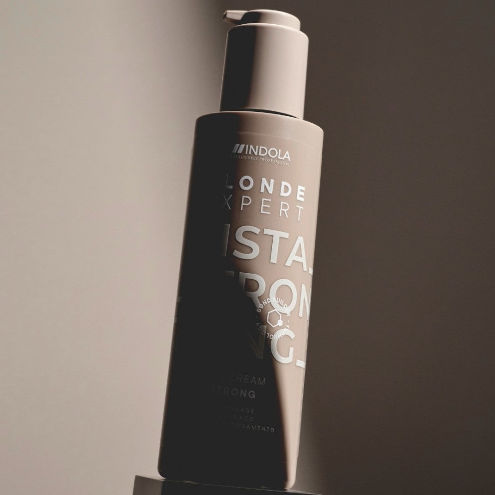 Indola Blonde Expert Insta Strong Leave-In Cream er den plejende leave-in til blondiner, der lige har farvet, lysnet eller afbleget deres hår. Denne cremede, men luftige creme plejer intensivt uden at tynge håret og hjælper med at reparere håret indefra og ud. Cremen giver varmebeskyttelse op til 230 °C. Ideel til daglig brug og perfekt som stylingforberedelse efter en farvebehandling.