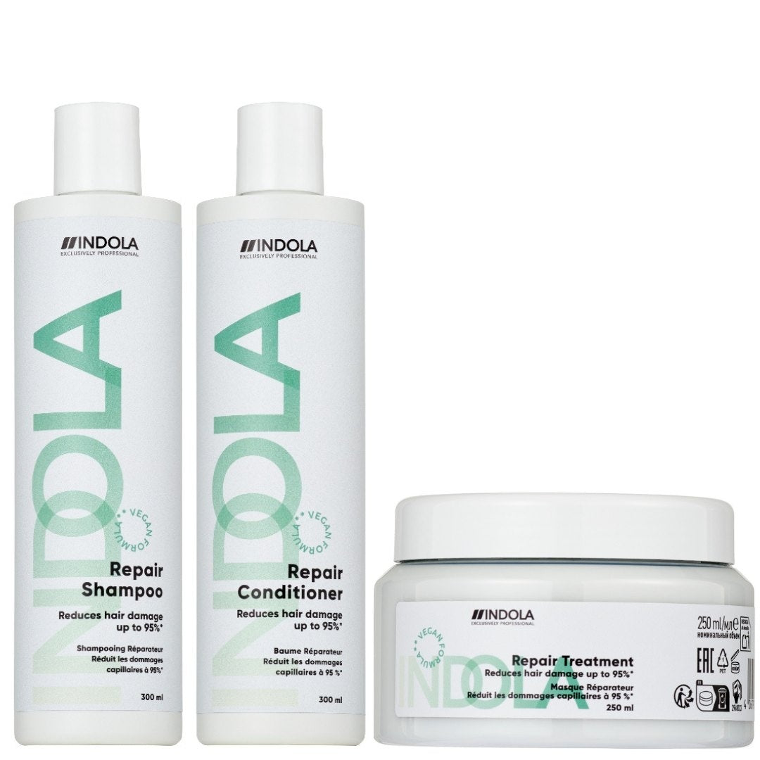 Indola Repair Care Set fås i pakker med 300 + 300 + 250 ml