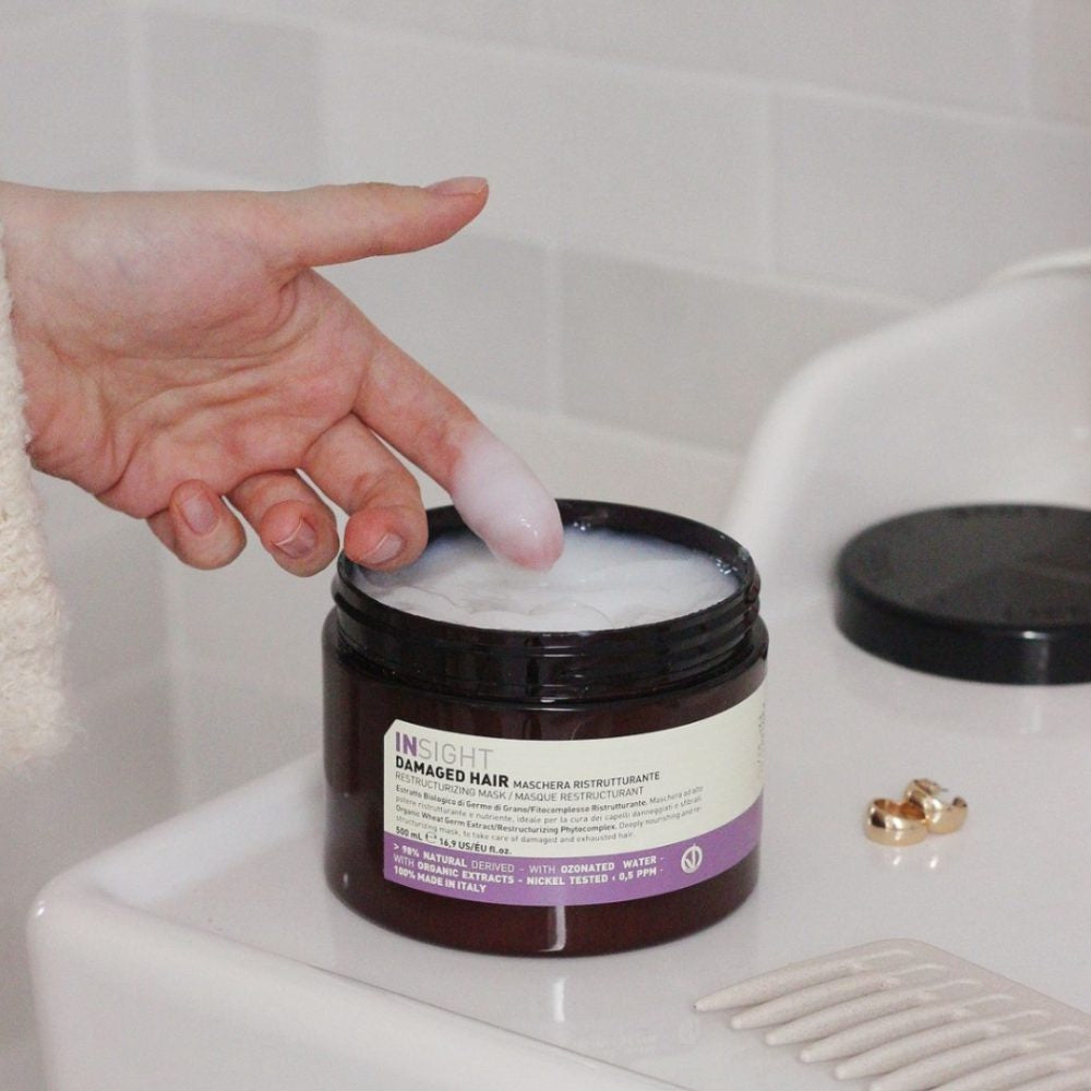 Insight Damaged Hair Restructuring Mask er en genopbyggende maske, der reparerer skadet og skrøbeligt hår. Masken genskaber glans og silkeblødhed i håret. Efter brug af masken er håret lyst, elastisk og har mere volumen end før. Så er du på udkig efter en nærende maske, der forbedrer dit hårs tilstand intenst, lige når du bruger den? Så er du kommet til det rette sted! Masken er som alle Insight-produkter fri for mineralolie, parabener, farvestoffer, silikoner og allergifremkaldende duftstoffer. Desuden består masken hovedsageligt af økologiske ingredienser som hvedekimekstrakt, olivenolie, arganolie og risklidolie. Du får den bedste pleje ud af masken, hvis du kombinerer den med de andre produkter fra Insight Damaged Hair-serien. Så kombiner dette produkt med Insight Damaged Hair Restructuring Shampoo og eventuelt Insight Damaged Hair Restructuring Conditioner for at sætte prikkenover i'et!