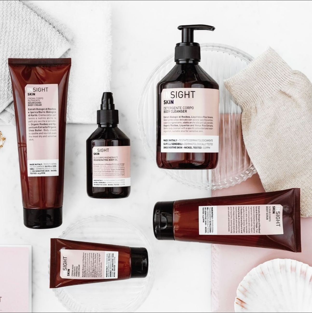Insight Skin Body Cleanser er en hudvenlig rens, som renser huden godt. Den efterlader huden gennemfugtet og blød. Hudens naturlige forsvar forbliver det samme på grund af den milde formel. Rensen har antioxidantegenskaber og er dermatologisk testet for at give større sikkerhed for personer med overfølsom hud. Rensen indeholder økologisk rooibos-ekstrakt, som sikrer, at huden bevarer sin sundhed og skønhed. Også Insight Organic Venere Rice Extract's produkt indeholder egenskaber, der er essentielle for huden. Desuden er produktet testet på dyr, fri for parabener og silikoner og 100 % vegansk.