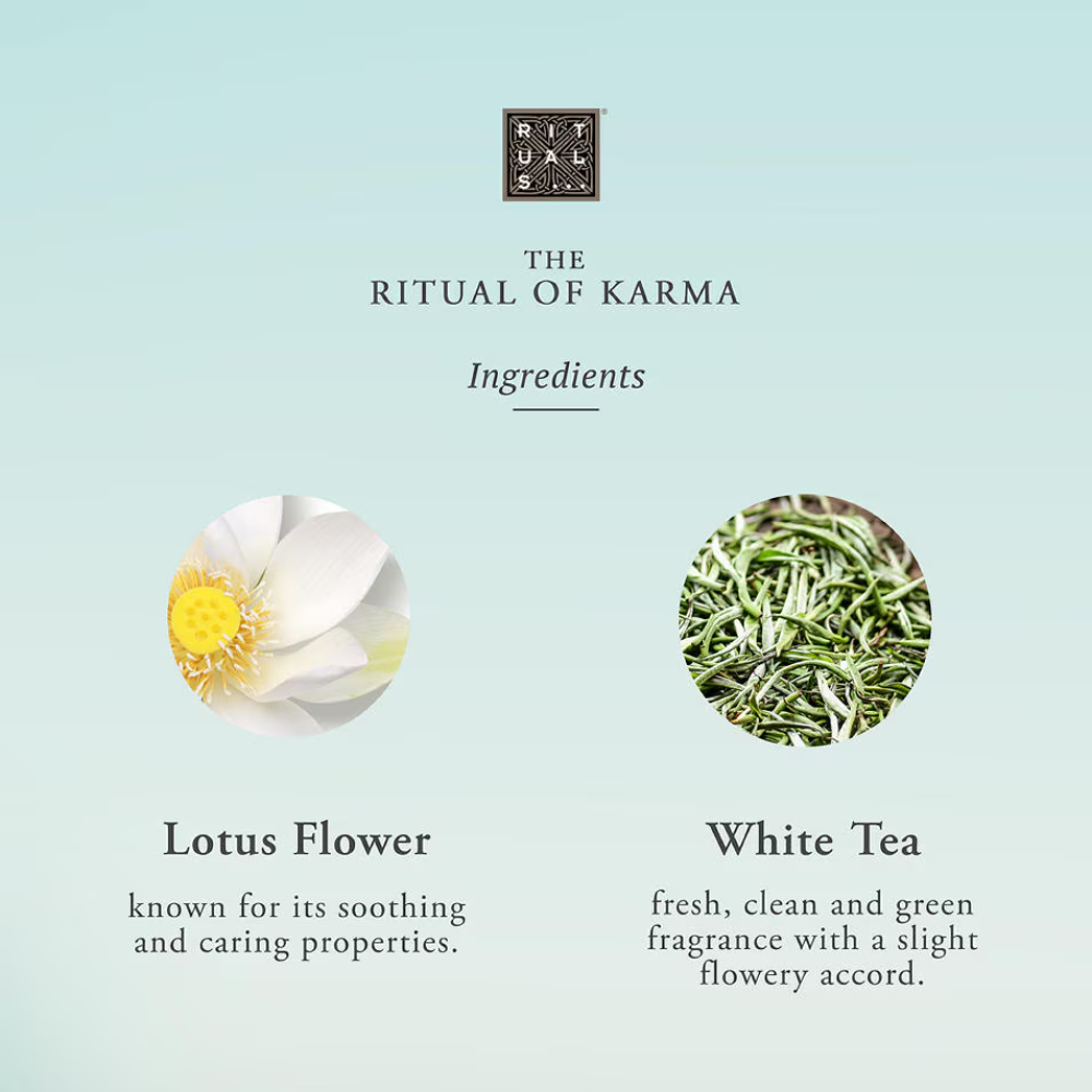 • Ikonisk Karma-duft: hvid te & hellig lotus