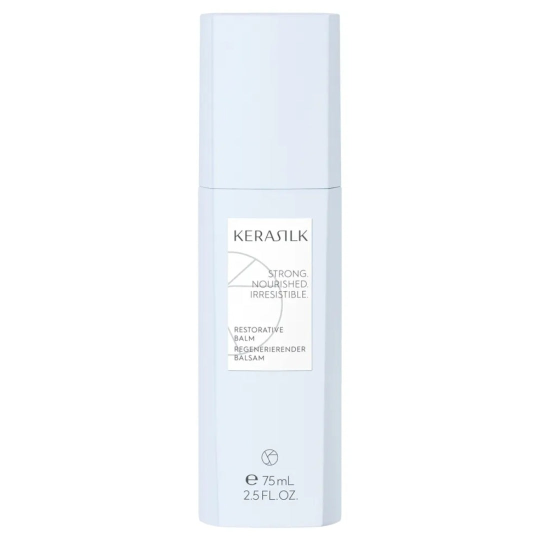 Kerasilk Restorative Balm er den ultimative leave-in pleje til skadet og skrøbeligt hår! Denne genopbyggende balsam nærer dit hår i dybden og beskytter det mod yderligere skader, så dit hår bliver stærkere, sundere og glattere. Kerasilk Restorative Balm er beriget med keratin- og silkeproteiner, der reparerer hårfibrene og forhindrer, at håret tørrer ud eller knækker. Perfekt, hvis du jævnligt farver eller styler dit hår, for denne balsam forebygger de skader, det medfører!