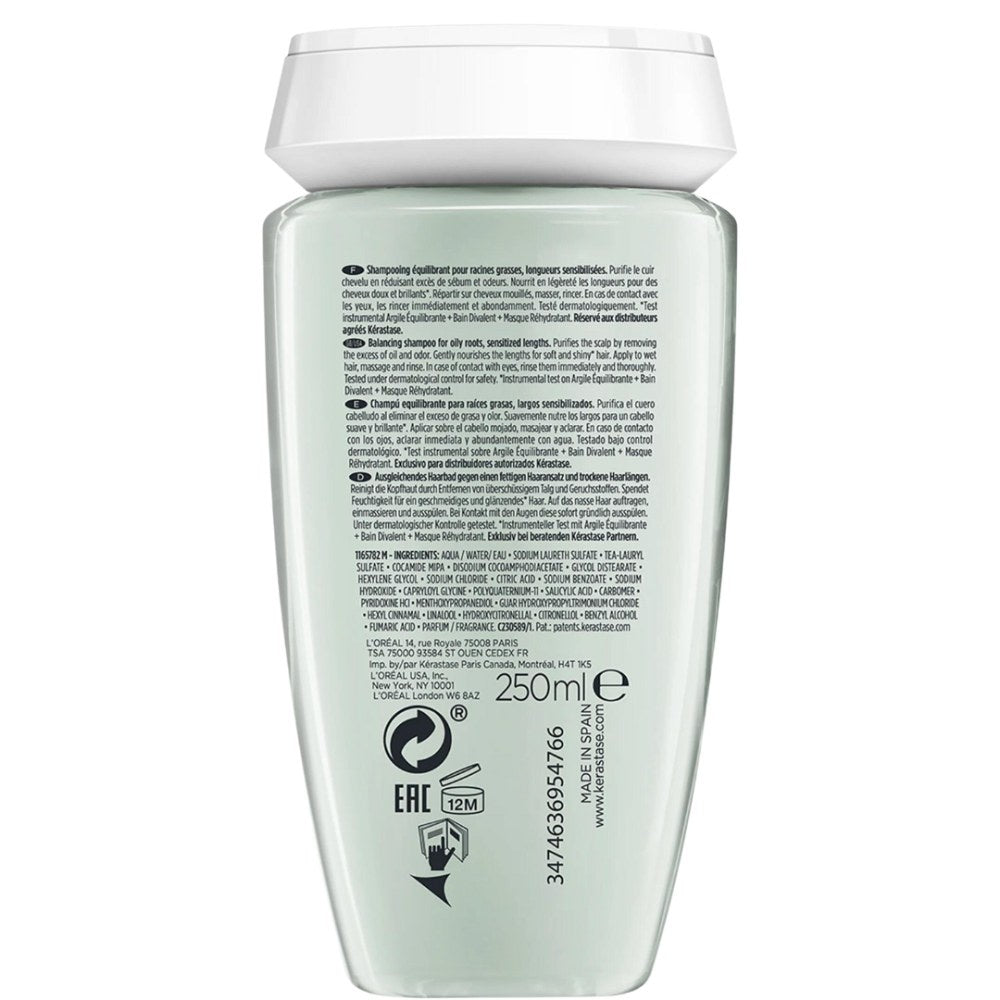 Kérastase Specifique Bain Divalent Balancing Shampoo er ideel til fedtet hovedbund Shampooen renser og udrenser håret grundigt. Samtidig giver den intens næring til hele håret. Formlen er beriget med aminosyre og B6-vitamin. Formlen fugter håret og regulerer overproduktionen af talg. Resultatet er, at hovedbunden ikke længere føles og ser fedtet ud.