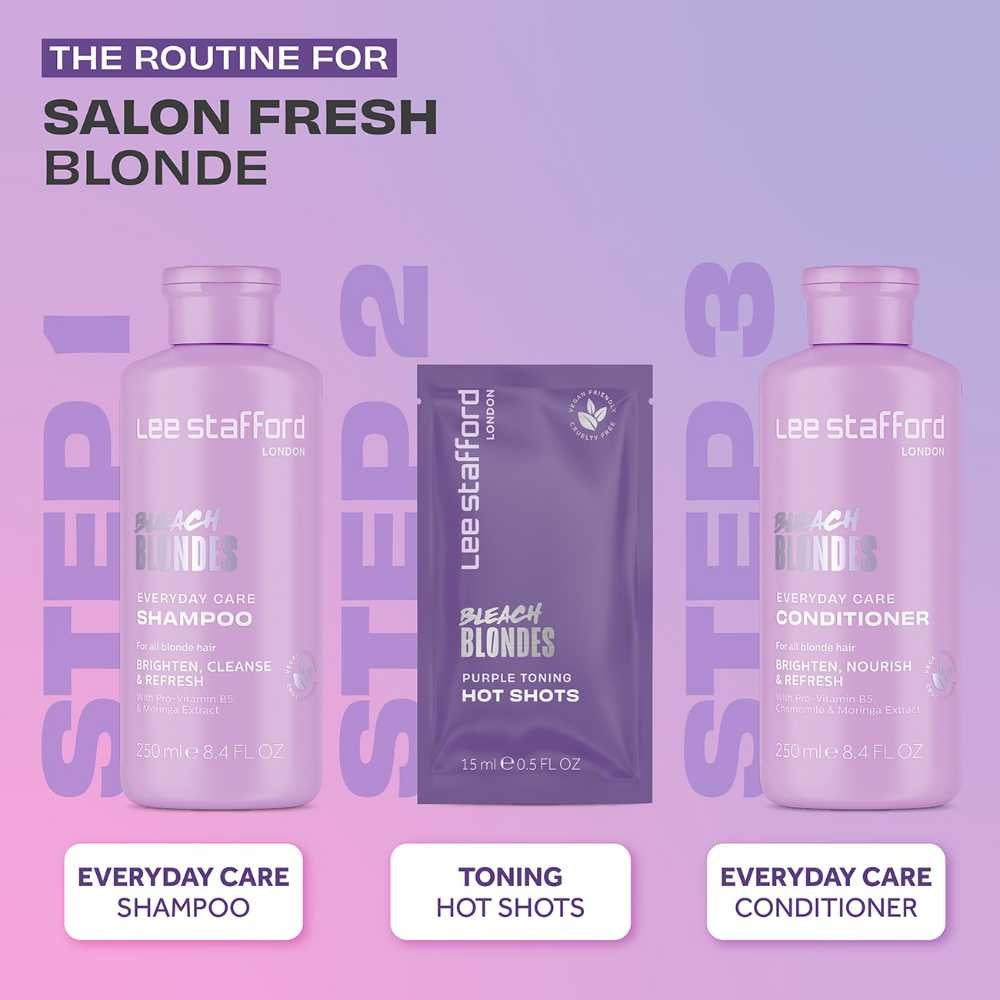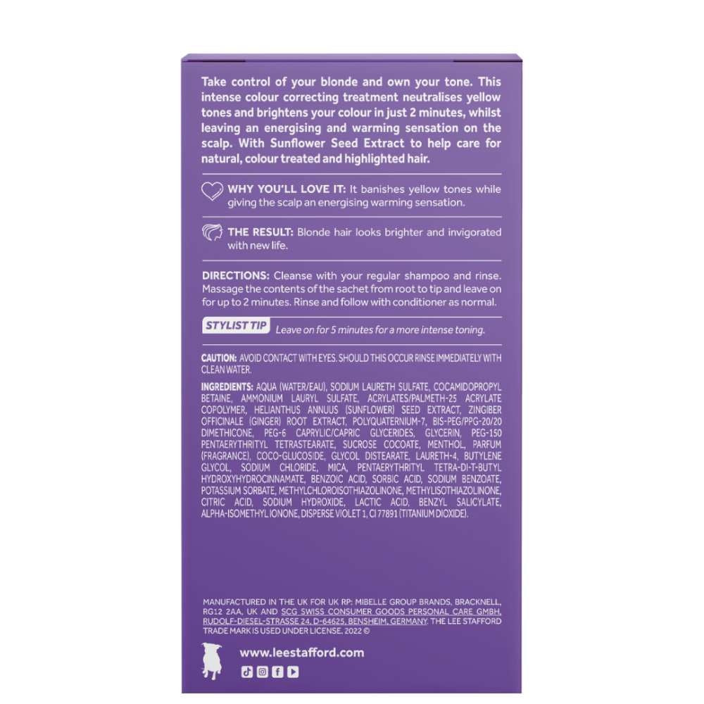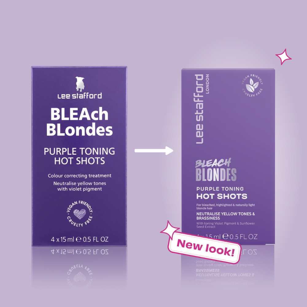 Lee Stafford Bleach Blondes Purple Toning Hot Shots fås i pakker med 4x 15 ml.