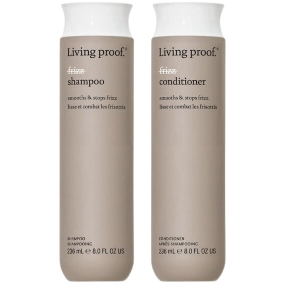 Living Proof No Frizz Set (shampoo og balsam) gør dit hår glattere, blødere og mere medgørligt. No Frizz-sættet sikrer, at krus reduceres, selv ved høj luftfugtighed.