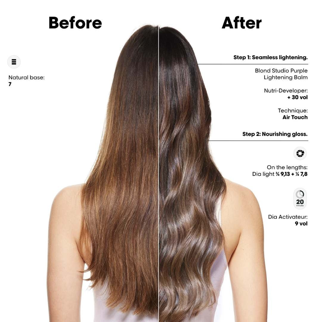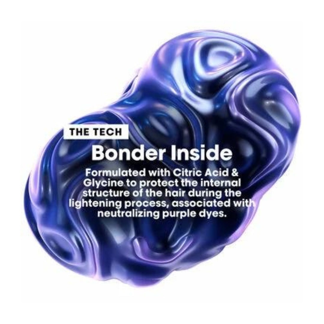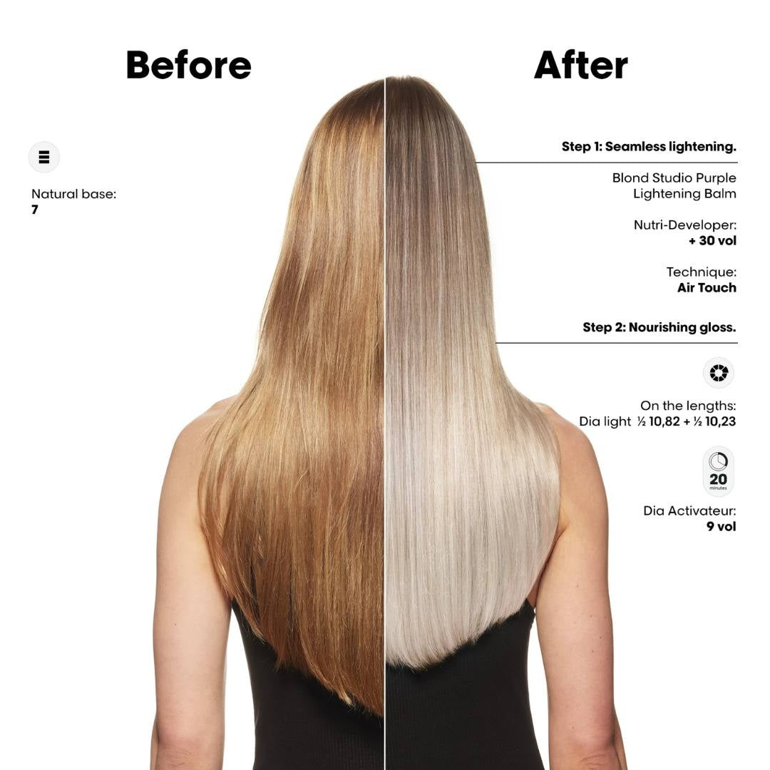 L'Oreal Blond Studio 8T Purple Balm er en kraftig affarvningsbalsam, der er designet til at løfte håret op til 8 toner, samtidig med at den styrker hårfibrene og neutraliserer gule undertoner. Alt sammen i bare ét trin. Med sin innovative Bonder Inside-teknologi og beriget med 29 % nærende olie styrker denne balsam håret indefra under lysningsprocessen. Desuden indeholder balsammen Purple Dye Complex, der giver øjeblikkelig neutralisering af gule toner, hvilket giver håret en lys og jævn blond farve!
