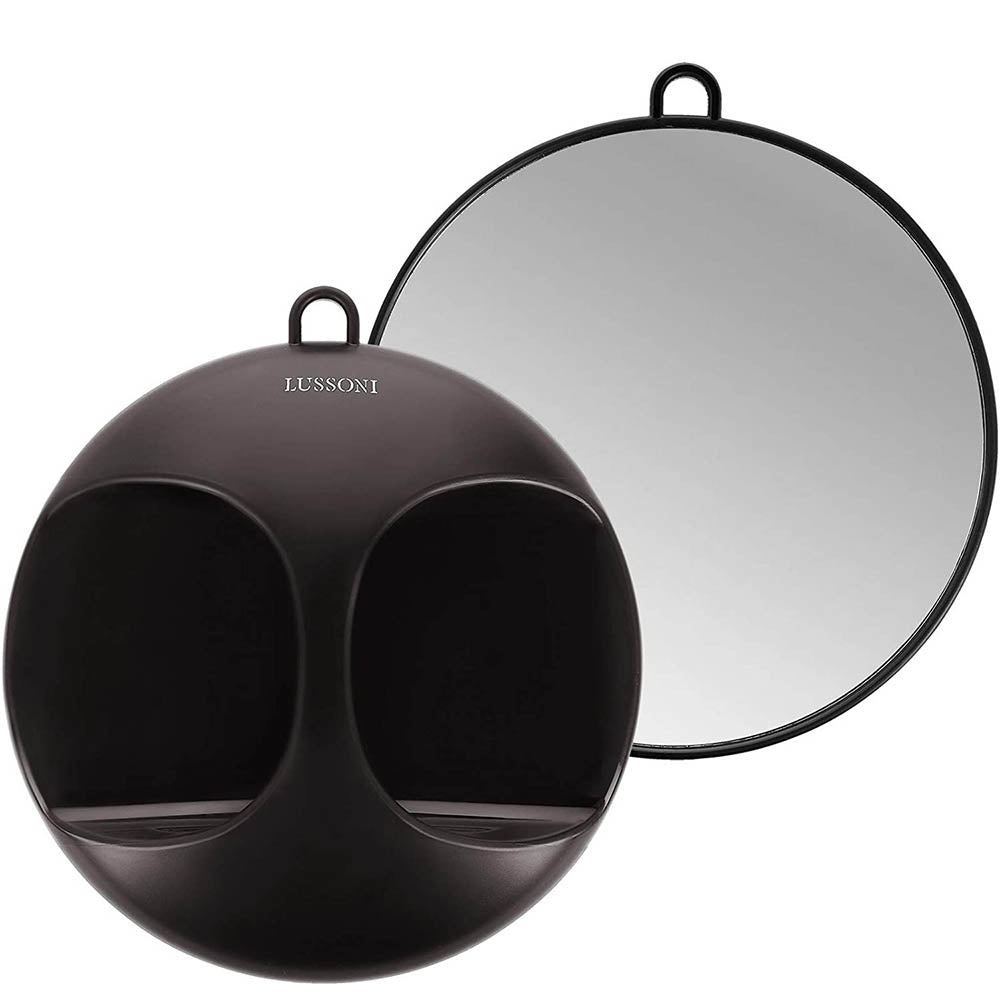Lussoni Hand Mirror Elegant 29cm er et must-have for frisører og også praktisk til hjemmet. Håndspejlet hjælper kunderne med at se bagsiden af deres nyklippede hår. Har du altid svært ved at se dit hår bagfra? Det er en leg med dette multifunktionelle sorte håndspejl. Håret bliver smukt stylet både forfra og bagfra. Håndspejlet har en diameter på 29 cm. Takket være det praktiske håndtag er spejlet let at holde, mens du viser frisuren frem. Spejlet er stort, men let. Det er den ideelle funktionelle tilføjelse til store vægspejle. Spejlet har også et håndtag, der gør det muligt at hænge det op på væggen. Lussonis spejl har et minimalistisk design, så det passer ind i enhver indretning.