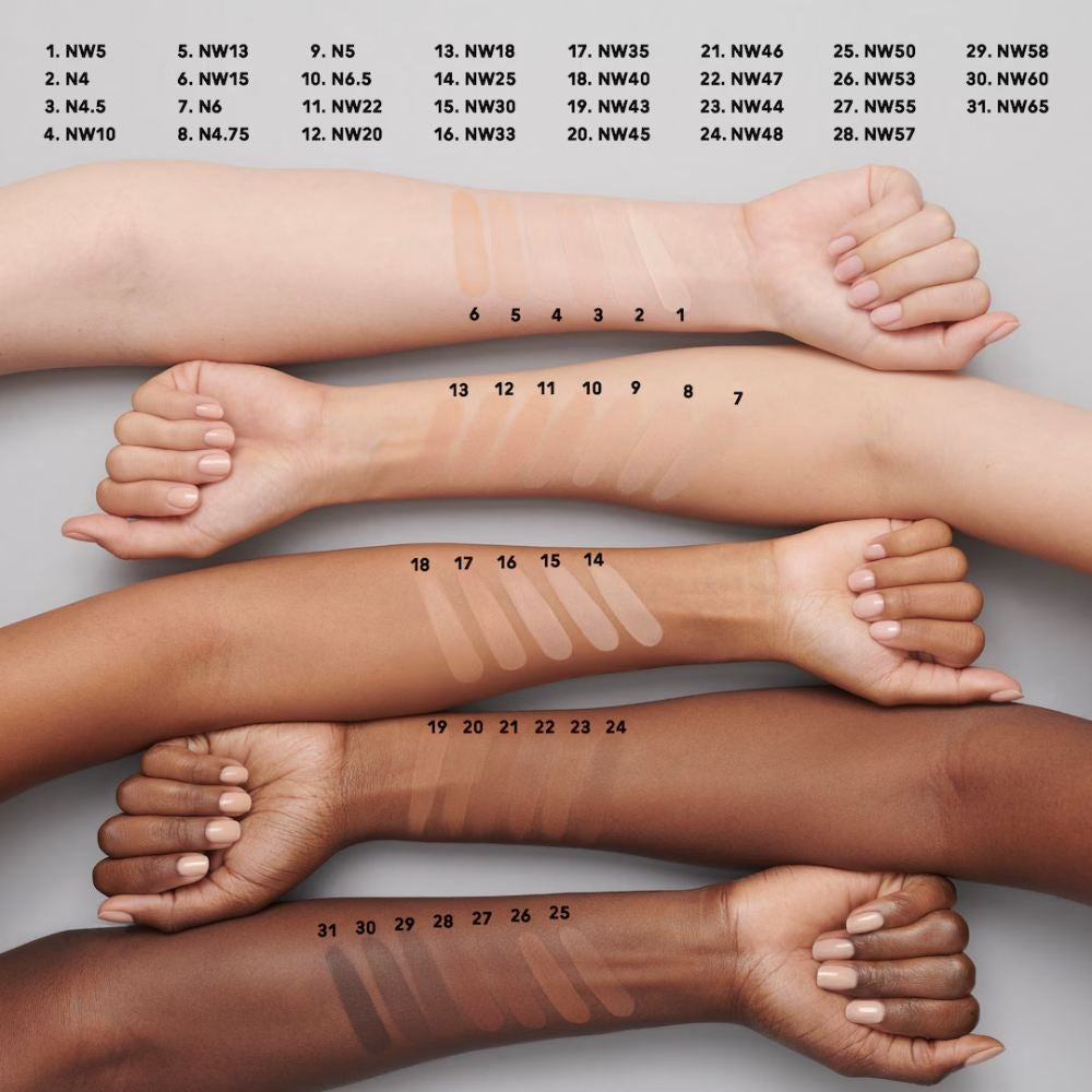 Vand, Methyl Trimethicone, Dimethicone, Trimethylsiloxysilicate, Peg-10 Dimethicone, Butylene Glycol, Isododecane, Ethylhexyl Methoxycinnamate, Polyethylene, Cetyl Peg/Ppg-10/1 Dimethicone, Magnesium Sulphate, Titanium Dioxide, Algeekstrakt, Laminaria Saccharina-ekstrakt, natriumhyaluronat, Salix Nigra (pil) barkekstrakt, tocopherylacetat, koffein, lecithin, hydrogeneret lecithin, disteardimoniumhektorit, silica, xanthangummi, dimethiconekrydsningspolymer, Triethoxycaprylylsilane, Dimethicone/Peg-10/15 Crosspolymer, Methoxy Amodimethicone/Silsesquioxane Copolymer, Sorbitan Sesquioleate, Salicylic Acid, Sodium Citrate, Laureth-7, Methyldihydrojasmonate, Propylene Carbonate, Alumina, Dipropylenglycol, Pentaerythrityl Tetra-Di-T-Butyl Hydroxyhydrocinnamate, Bht, Phenoxyethanol, Sorbinsyre, Chloroxylenol, [+/- Titandioxid (Ci 77891), Jernoxider (Ci 77491), Jernoxider (Ci 77492), Jernoxider (Ci 77499)]. ILN50544