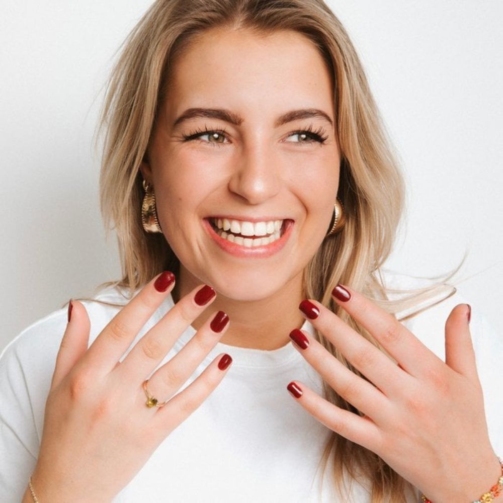 Rita Red Polish Sticker gør dine negle ultra-skinnende, stilfulde og elegante med en fyldig Bordeaux-finish. Forvent komplimenter overalt.