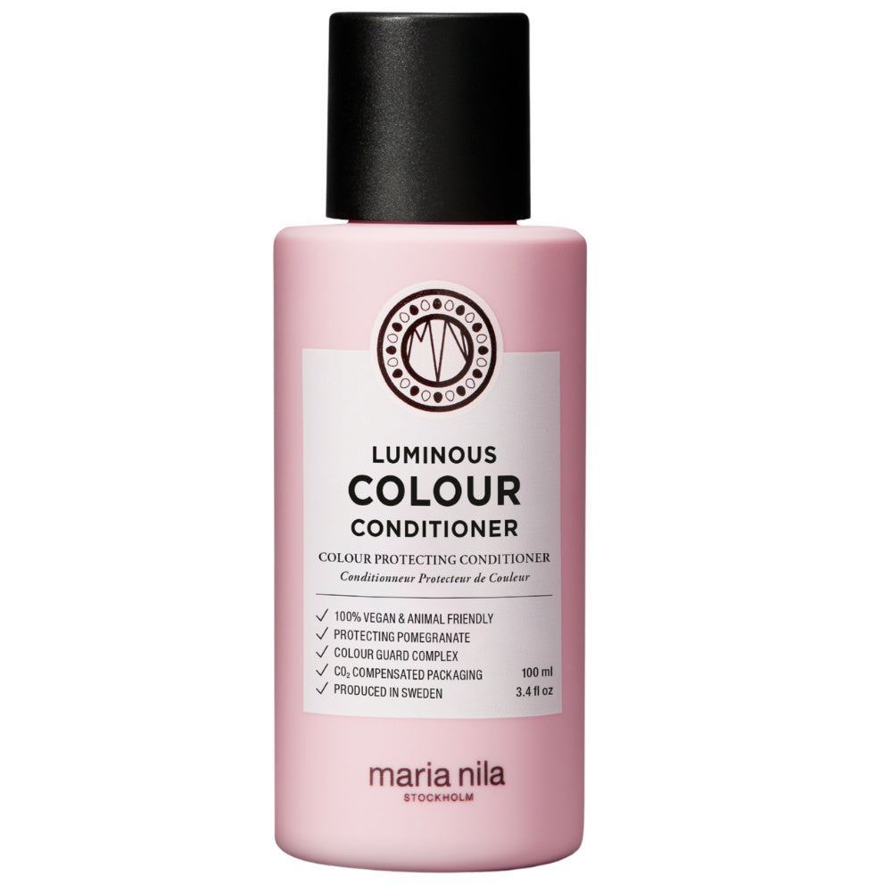 Maria Nila Luminous Colour Conditioner er en fantastisk balsam til farvet hår. Den styrker hårets struktur, blødgør håret, efterlader det glansfuldt og forebygger statisk elektricitet. Balsammen indeholder granatæbleekstrakt, som hjælper med at forhindre farvetab. Alle Maria Nilas produkter indeholder Colour Guard Complex, som forhindrer din hårfarve i at falme og beskytter dine lokker mod UV-stråler. Maria Nila Palett Luminous Colour Conditioner består af 100 % plantebaserede ingredienser. Denne balsam er fri for sulfater og parabener.