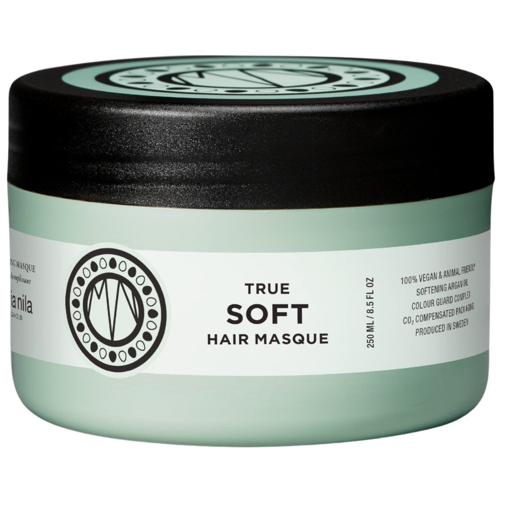 Maria Nila True Soft Masque er specielt udviklet til dit tørre og porøse hår. Arganolien, som denne maske indeholder, sikrer, at dit hår bliver hydreret og revitaliseret, og den efterlader dine lokker silkebløde. Maria Nila Palett True Soft Masque består af 100 % botaniske ingredienser, og den er med andre ord 100 % vegansk! Det vidunderlige Colour Guard Complex beskytter dine lokker og reducerer farvetab. Denne balsam indeholder hverken sulfater eller parabener.