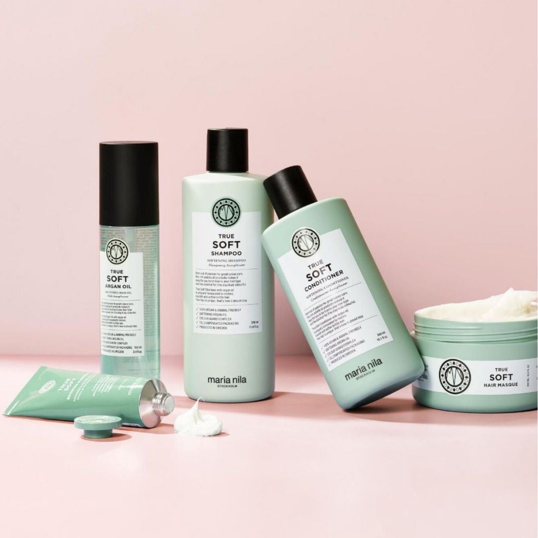 Maria Nila True Soft Argan Oil er en nærende økologisk olie til dit hår. Arganolie fugter dit hår, hvilket gør den fantastisk, når du har tørt og porøst hår. Med arganolie får dit hår den pleje, det har brug for. Det gør dit hår stærkere og skinnende igen. Desuden forebygger arganolie krus og har en antistatisk effekt. Denne arganolie er velegnet til alle hårtyper, og du kan bruge den dagligt. Vores team anbefaler den dog især til meget tørt hår. True Soft Argan Oil hører til Maria Nilas True Soft-serie sammen med en balsam, en shampoo og en hårmaske. Denne serie er specielt designet til at pleje tørt og porøst hår.