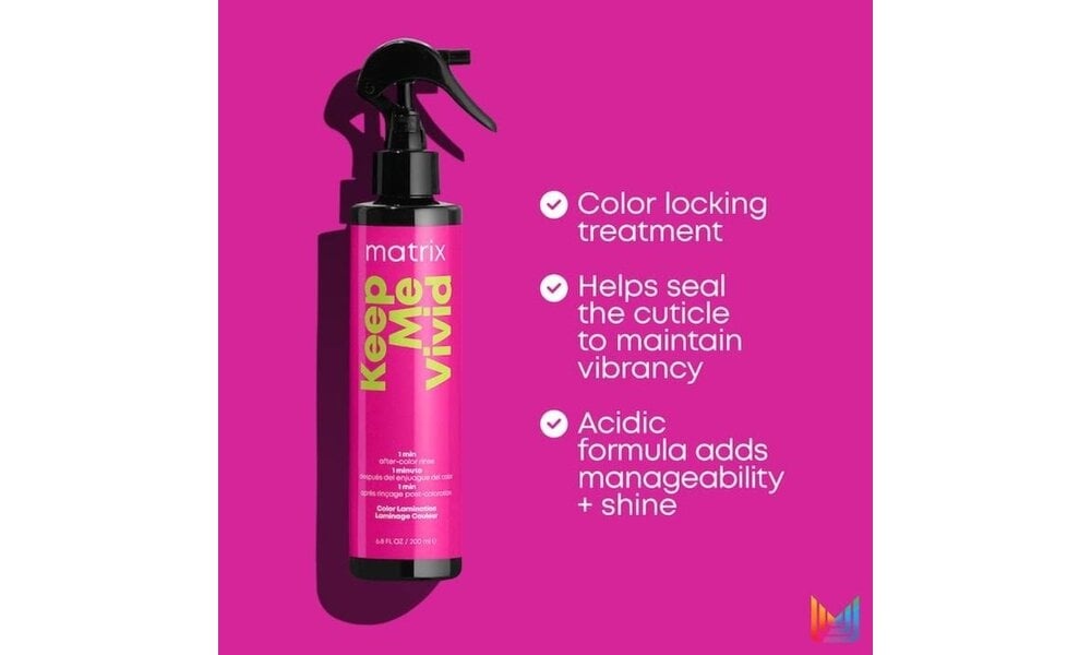 Tag først lidt af Matrix Total Results Keep Me Vivid Shampoo. Påfør den i vådt hår, og massér den ind. Skyl grundigt. Tag derefter en lille smule af Matrix Total Results Matrix Keep Me Vivid Conditioner og fordel det i hårets længder. Lad det virke et stykke tid, og skyl det også grundigt. Spray Keep Me Vivid Coloured Lamination Hairspray jævnt ud over håret. Lad sprayen virke i mindst 1 minut, og skyl forsigtigt. Style dit hår som ønsket.