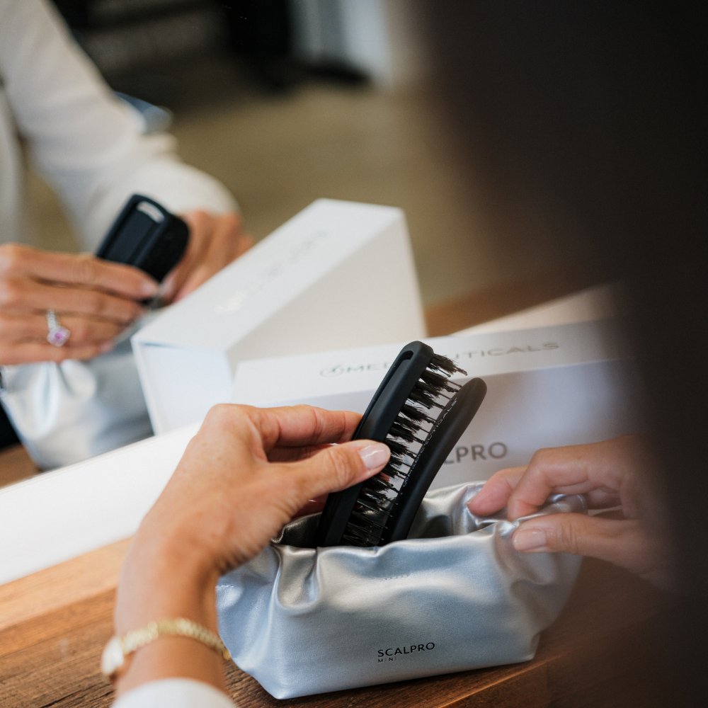 Mediceuticals Scalpro Hairbrush Mini er et must-have til sund hovedbundspleje. Denne praktiske, sammenklappelige børste har flere fordele:
