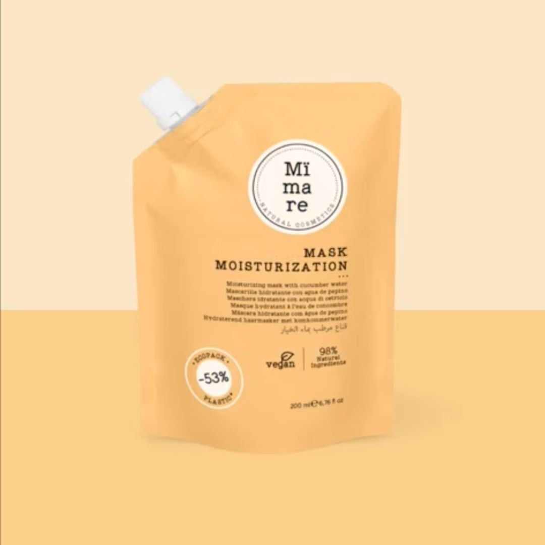 Mïmare Moisturising Mask er en intenst nærende hårmaske, der er specielt designet til tørt, kedeligt eller dehydreret hår. Den rige, cremede tekstur giver dit hår et øjeblikkeligt fugtboost uden at tynge det ned. Beriget med naturlige ingredienser, fri for sulfater og silikoner og pakket i bæredygtig emballage med 53% mindre plastik. Kort sagt: ultimativ pleje af dit hår med kærlighed til planeten!