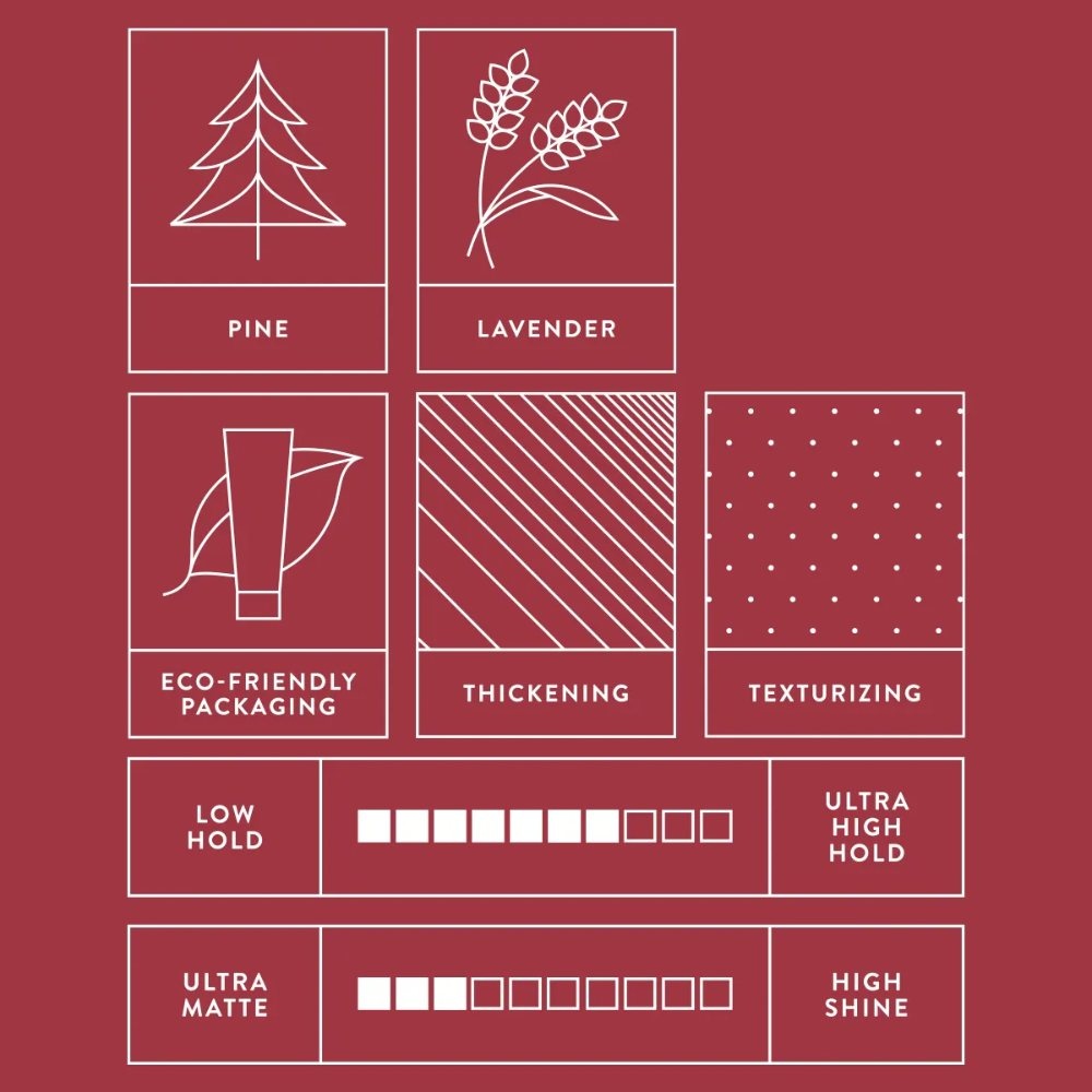 • Kaolin Clay: Giver et stærkt hold og giver håret en mat finish.