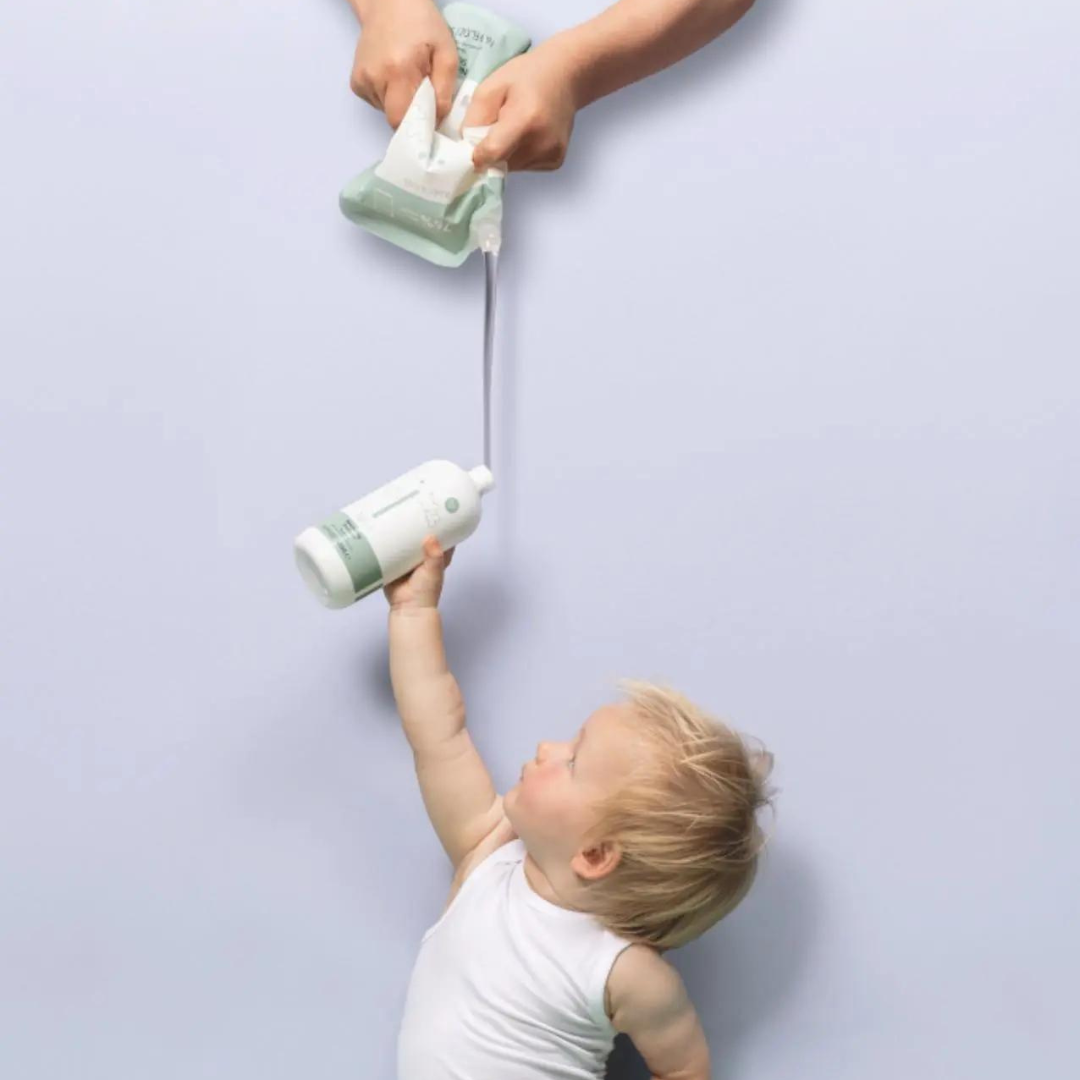 Naïf Nourishing Shampoo Baby & Kids Refill Pack er ideel , når du er løbet tør for din Nourishing Shampoo. Du kan nemt hælde shampooen fra posen over i din shampooflaske og dermed spare plastik! Pakken sparer CO2, da der skal fremstilles mindre emballage, og desuden sparer disse poser også plads under transport.
