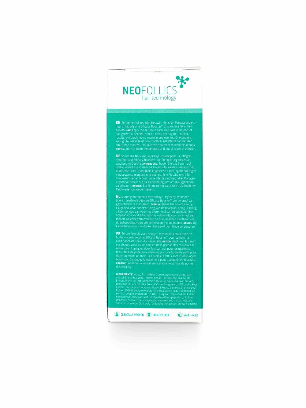 Vi har listet de vigtigste egenskaber ved Neofollics Beard Growth Serum for dig;