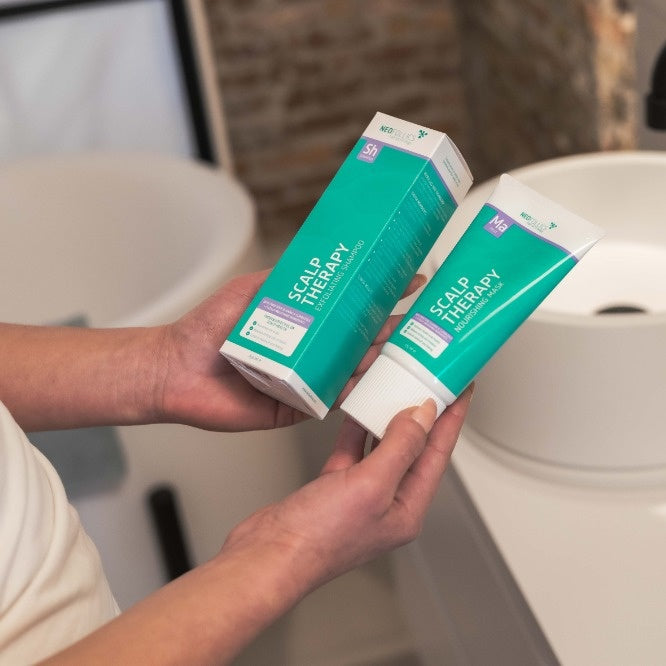 Klinisk forskning har vist, at Neofollics Scalp Therapy Nourishing Mask i kombination med Scalp Therapy Shampoo forbedrer hovedbundens tilstand og reducerer skæl, afskalning og kløe efter blot fire ugers brug! Du vil bemærke mindre afskalning og skæl og en mere udhvilet hovedbund.