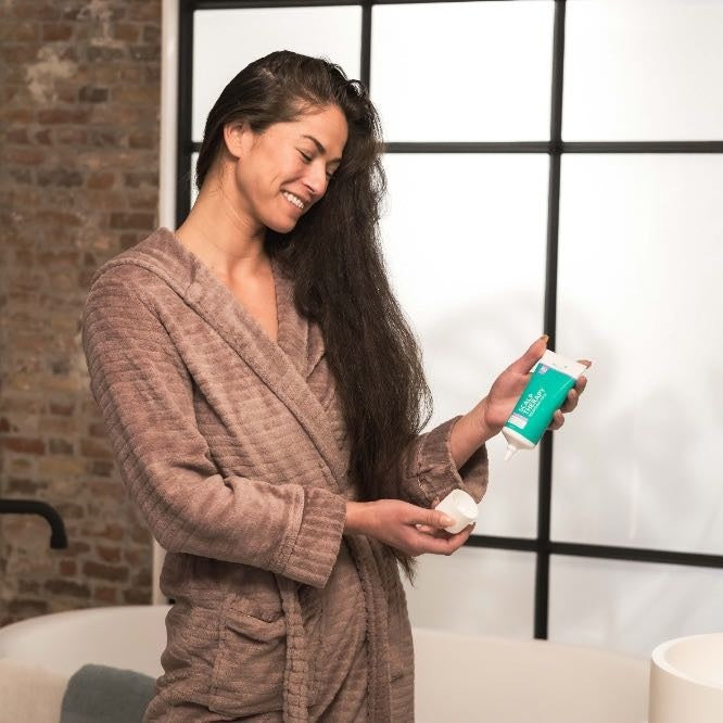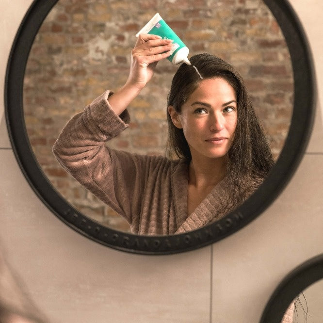 Tag en generøs mængde af masken på dine hænder. Påfør den i hovedbunden efter hårvask, og massér den ind i hovedbunden. Lad masken sidde godt, og skyl den ikke ud. For at opnå detbedste resultat anbefaler vi at bruge masken 3-4 gange om ugen i kombination med Neofollics Exfoliating Shampoo. Vi har også denne kombination i et praktisk sæt.