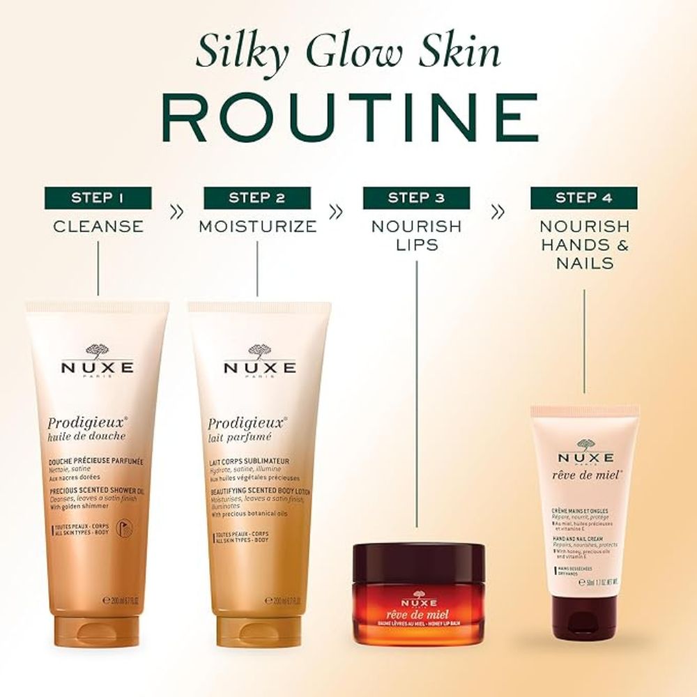 De Prodigieux Beautifying Scented Body Lotion is een zijdezachte bodylotion die je huid niet alleen hydrateert, maar ook laat stralen met een subtiele satijnglans. Deze heerlijke lotion van Nuxe bevat kostbare plantaardige oliën en is doordrenkt met de iconische geur van Huile Prodigieuse®. Perfect voor iedereen die houdt van een zachte huid met een vleugje glamour en een onweerstaanbare geur.