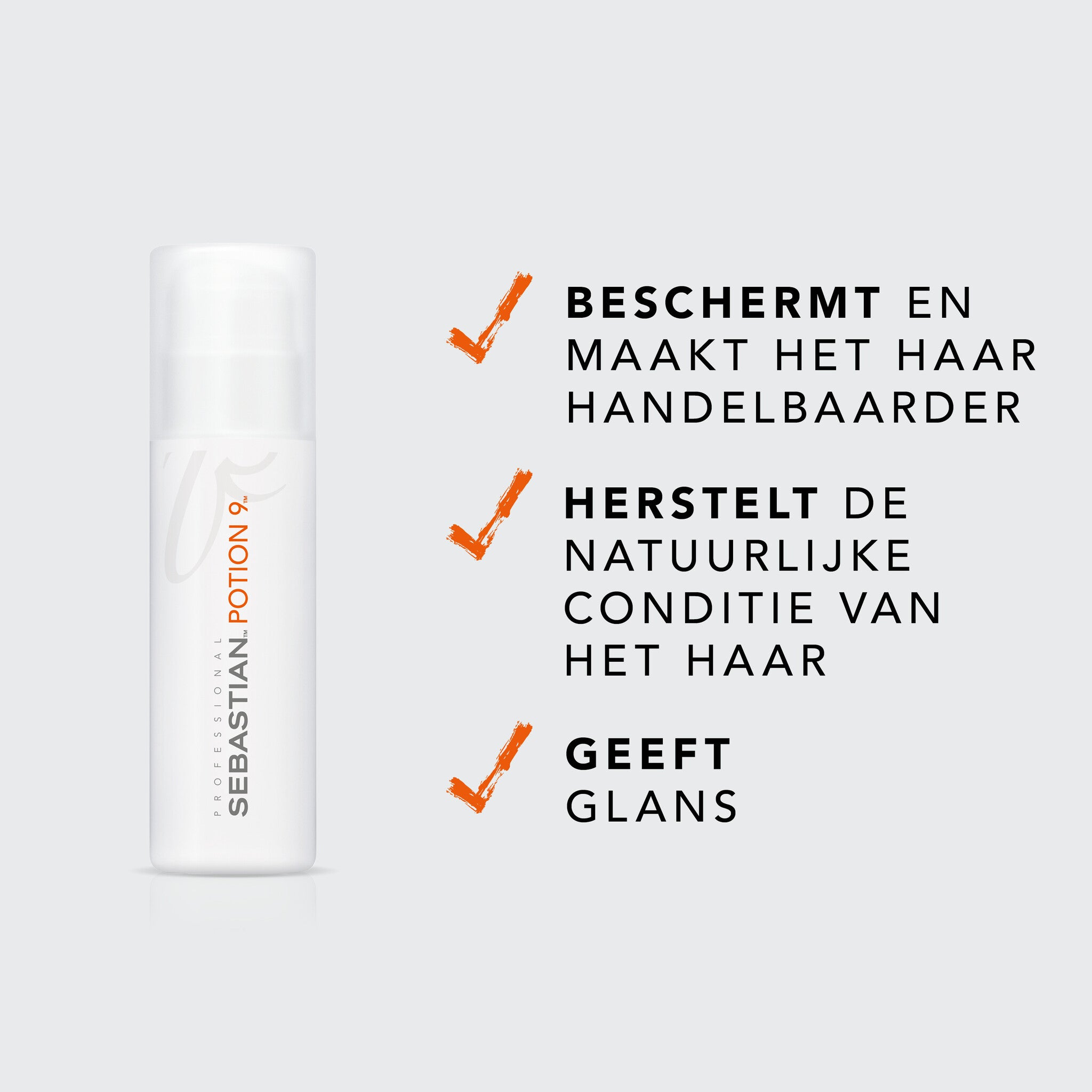 Sebastian Potion 9 er en leave-in-behandling og stylingcreme i én og genopretter og plejer dit hårs naturlige tilstand. Potion er beriget med 9 botaniske ingredienser, der nærer dit hår indefra og forbedrer dets tilstand. Denne behandling hjælper med at definere dine krøller og reducere krus, samtidig med at den beskytter dit hår mod varme og forbedrer den generelle tekstur. Potion 9 er et must-have for dem, der er på udkig efter et alsidigt hårpleje- og stylingprodukt i ét.