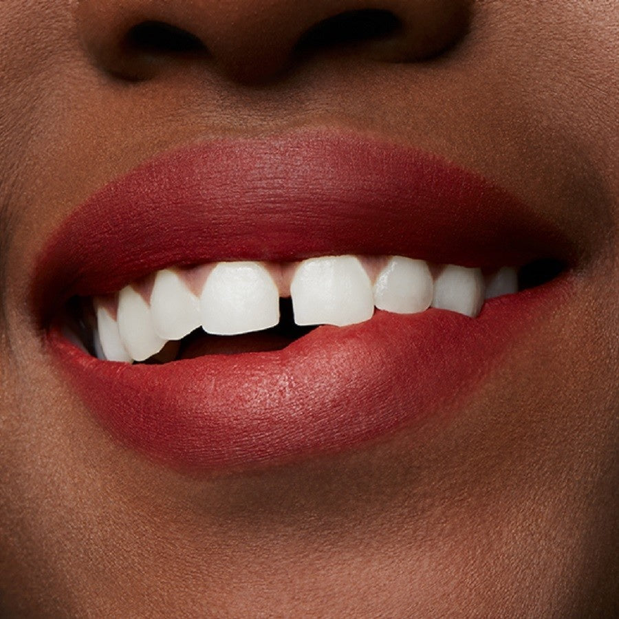 MAC Cosmetics Powder Kiss Devoted To Chili Liquid Lipstick efterlader dine læber matte og behageligt bløde. Farven forsvinder jævnt, bliver siddende i timevis og føles fugtet hele dagen.
