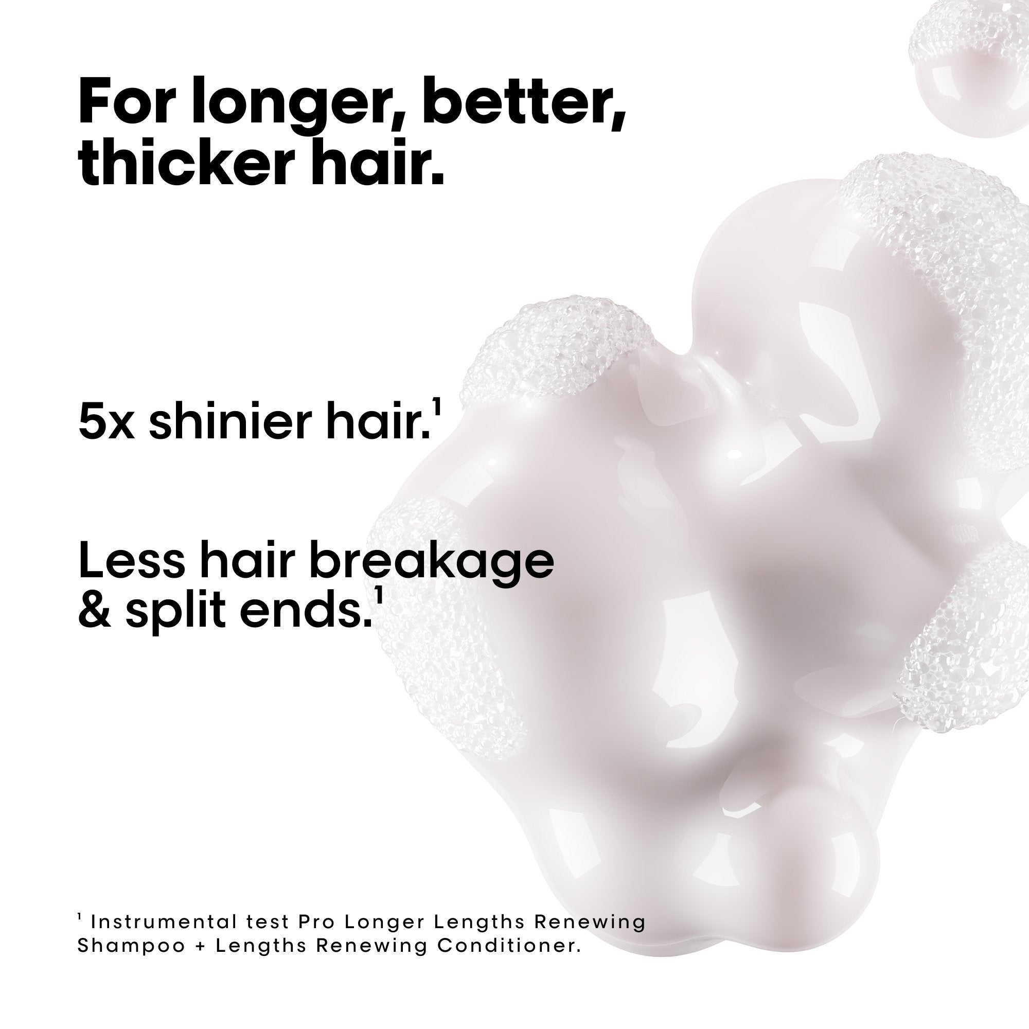 Påfør først en lille mængde af shampooen for at rense dit hår, og skyl derefter ud. Påfør shampooen igen for ekstra grundig rensning. For at opnå det bedste resultat anbefaler vi, at du bruger Pro Longer Conditioner bagefter, da den forsegler hårstråene og holder dit hår stærkt og smukt.