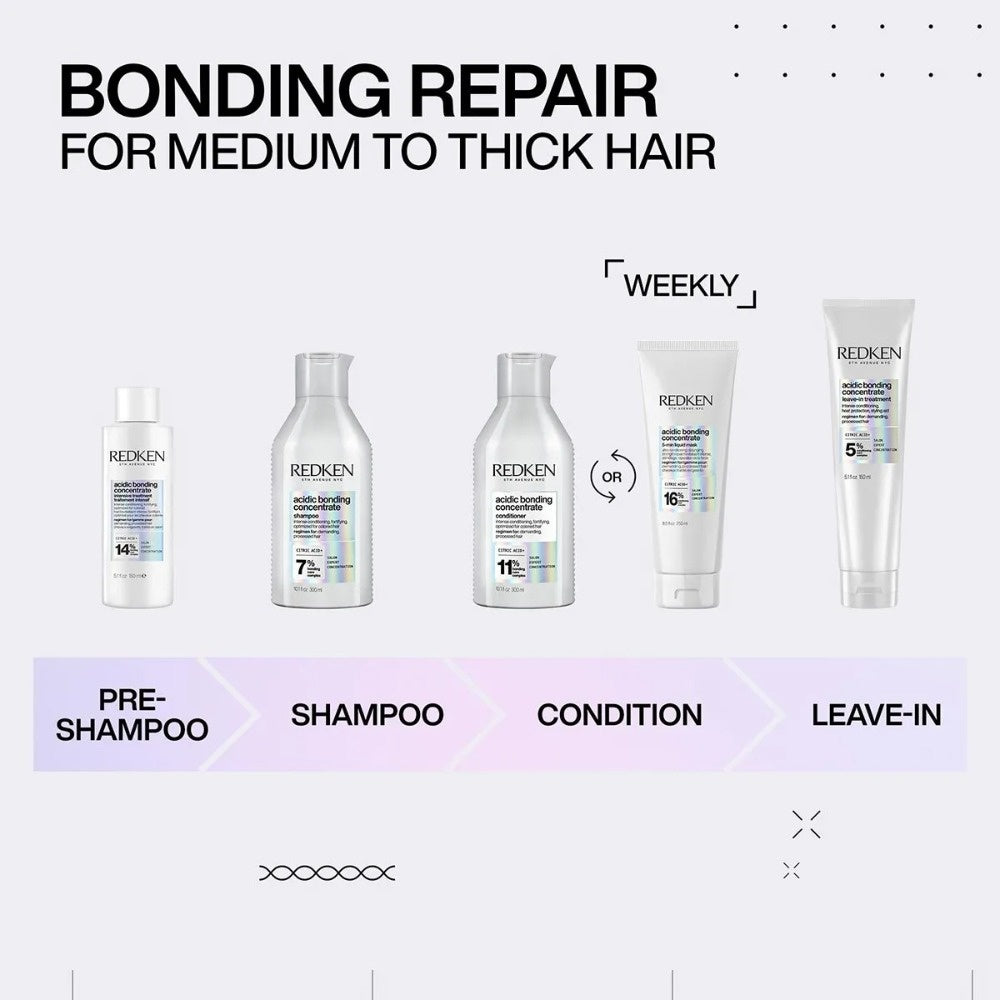 For at opnå de bedste resultater og genoprette det mest beskadigede hår anbefaler vi at bruge leave-in-cremen i kombination med Acidic Bonding Shampoo og Conditioner. Du kan selvfølgelig også bruge Acidic Bonding Concentrate Leave-In i kombination med andre produkter.